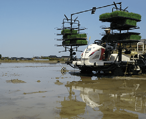 - 田植え機のオペレーターに苗や肥料を渡したりします。